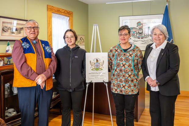 Left to right: Helen Balanoff, Honourable Gerald Kisoun, Commissioner of the Northwest Territories, Rick Hardy and Mary Teya