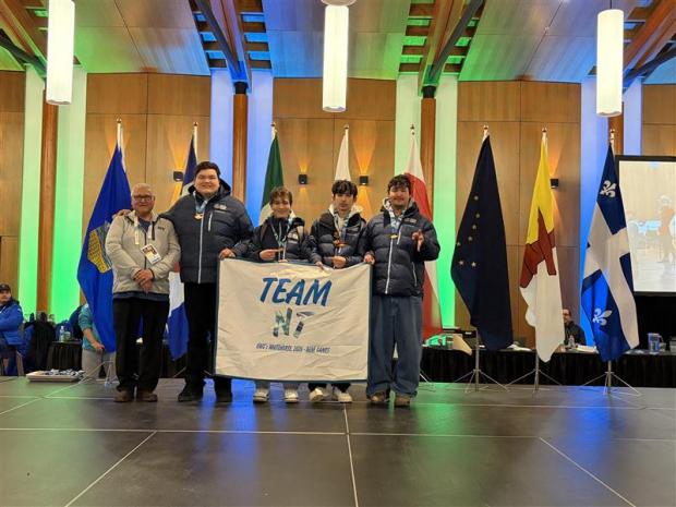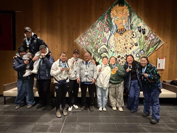 Arctic Winter Games Team NWT and The Hon. Gerald W. Kisoun, Commissioner of the Northwest Territories Dene Games - Hand Games U18 Male/Female Gold Medal